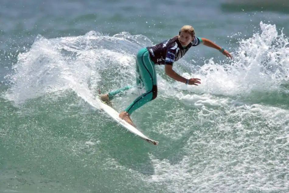 Серфер Бетани Гамильтон во время открытого чемпионата США по серфингу на пляже Хантингтон, штат Калифорния, четверг, 23 июля 2009 года.