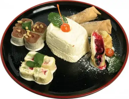 •Анмицу — кусочки охлажденного желе из агар-агар с фруктами и сладкой подливкой
