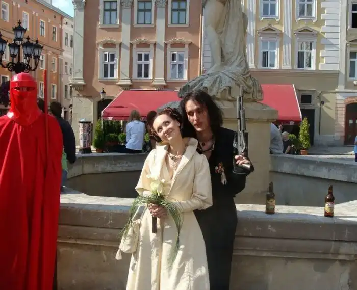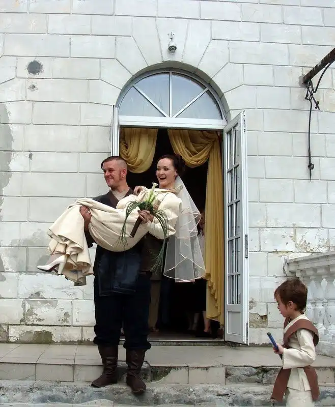 Молодожены из Львова, также разрешили своей крыше поехать этим летом.Поженились в стиле фильма "Звёздные войны".