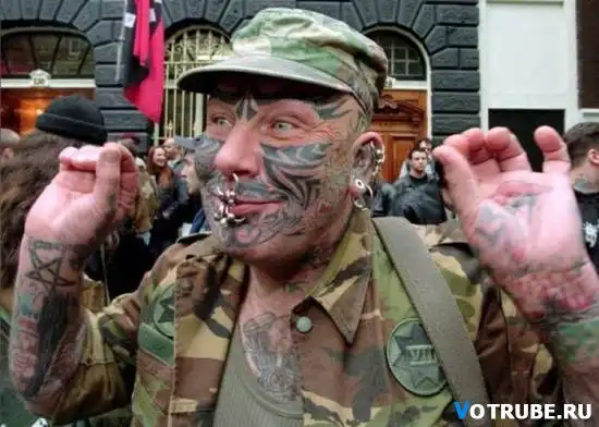 Ну первая явно не тату, а какой-то недоделанный рисунок фломастером. На второй вообще тату не увидел - только пирсинг.
