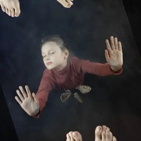 На фото Звира — ощущения, подсознательные импульсы, которые инсценированы при помощи обыкновенных людей, вживающихся в созданные им ситуации.
