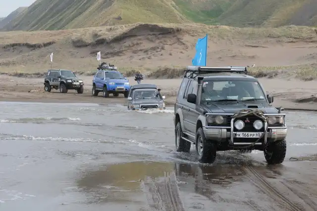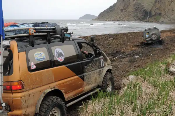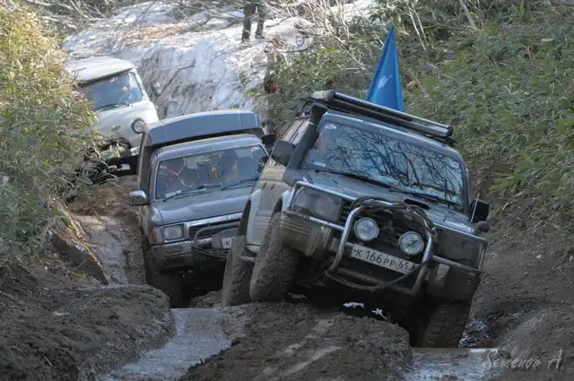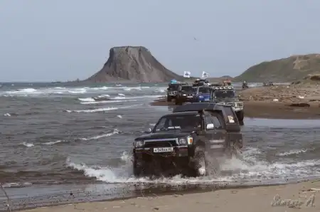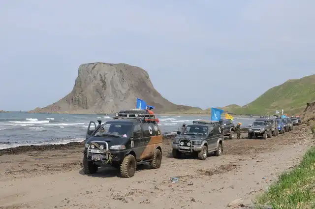 В этом году в начале мая состоялся Марш-бросок на мыс Крильон, это самая южная точка о. Сахалин. В марш броске, посвященном дню победы, приняли участие около 100 экипажей, а это около 90 джипов и 10 квадроциклов.