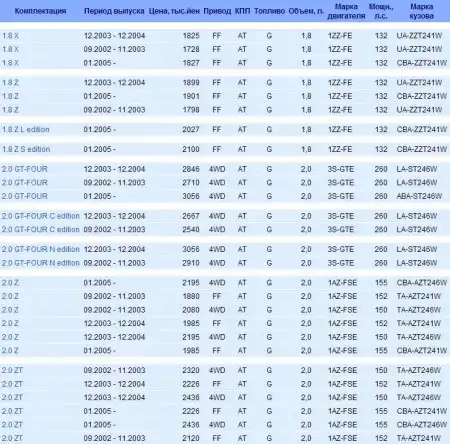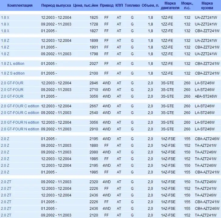 Третья модель этой марки с кузовом 24х, вышедшая на смену предыдущему 21х в сентябре 2002 года. Выпуск закончился в 2007 году, на внутреннем рынке остался только Авенсис в 250 кузове, полный ацтой.