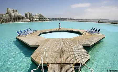 Искусственный водоем в гостиничном комплексе на южном побережье Чили имеет длину 1013 метров и глубину до 35 метров – это самый большой бассейн в мире. Площадь бассейна 8 гектаров, что составляет примерно 6000 обычных бассейнов, вместе взятых.