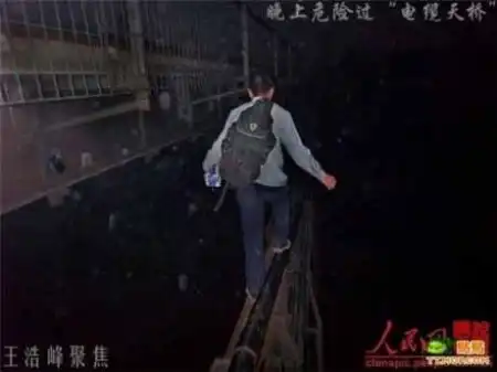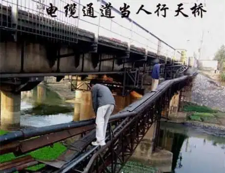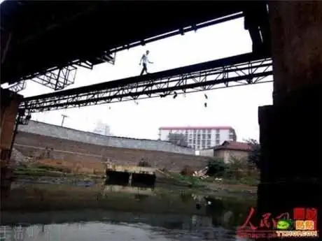 В силу острой необходимости китайцы вынуждены по такому "мостику" перебираться по нескольку раз в день через реку. Очень надеемся, что эта хлипкая конструкция продержится под тяжестью людей как можно дольше!