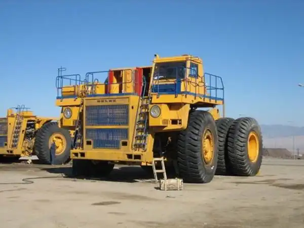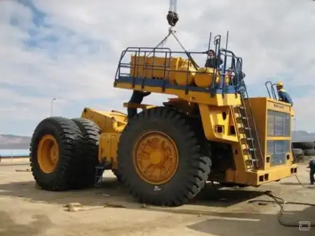 Не знал что их собирают под открытым небом, хотя все правильно, вес непозволяет перевозить их в собраном вие по дорогам общего пользования, поэтому к карьерам Белазы перевозят в разобраном виде и там собирают.