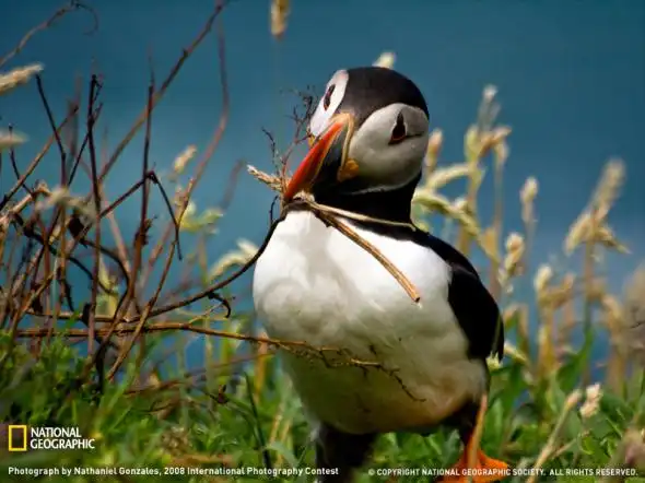 Тупик в Уэльсе собирает веточки для своего гнезда.