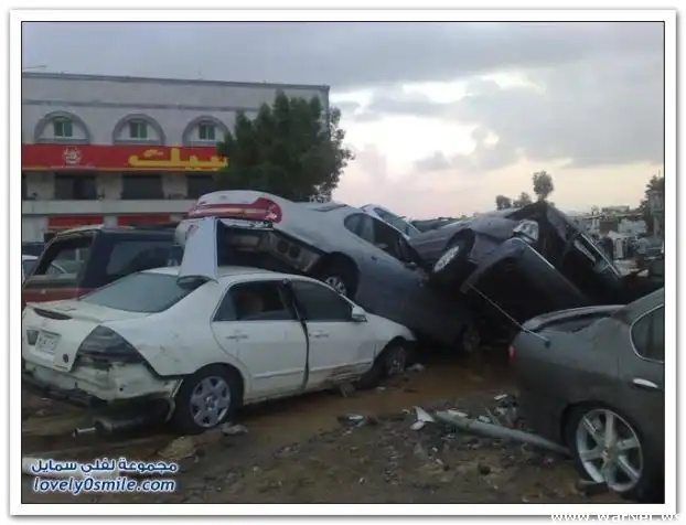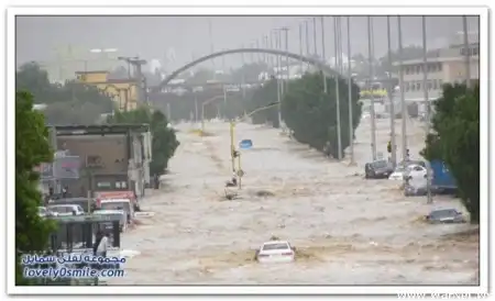 В городе Jeddah, Саудовская Аравия, ливень снёс всё на своём пути.