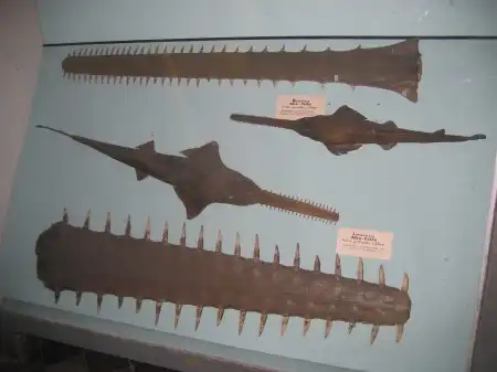 Это рыба-пила, я до того как её увидел думал их вообще в природе нет, а только в ужастиках показывают