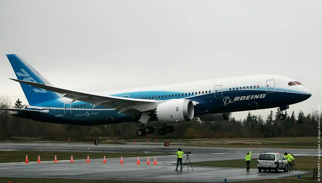 15.12.2009, США | Первый полет нового самолета Boeing 787 Dreamliner, поднявшегося вчера в воздух на аэродроме в Пейн Филд (недалеко от Сиэттла), завершился успешно. Лайнер провел в полете несколько часов. Boeing 787 рассчитан на перевозку 250-330 пассажиров. Стоимость новой машины — около 150 млн долларов. Первой Dreamliner получит японская авиакомпания ANA (All Nippon Airways). Российский «Аэрофлот» рассчитывает приобрести 22 такие машины.