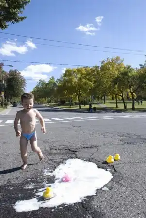 Интересный проект Claudia Ficca и Davide Luciano. Художники попытались взглянуть на выбоину с некоторой долей юмора, как на сцену, где происходят различные события. Получилось здорово.