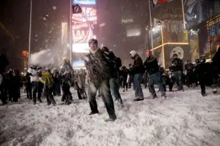 Когда он в огромных количествах выпал, горожане решили организовать массовую битву со снежками.