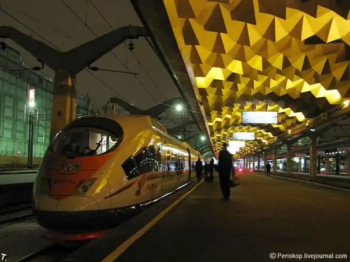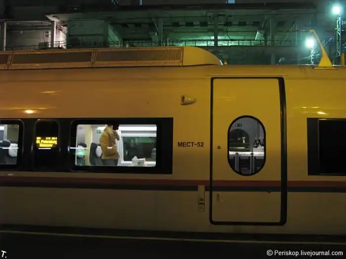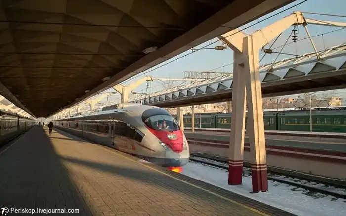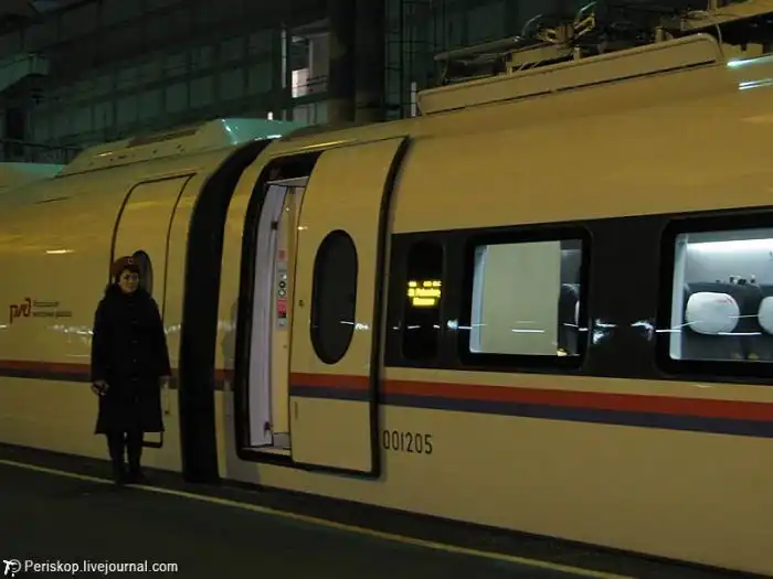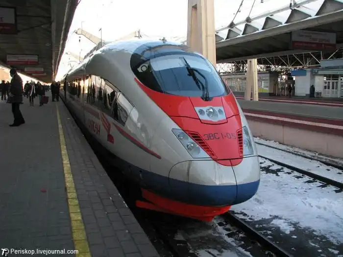 "Сапсан" - это самый быстрый поезд в России на данный момент.Он ходит по направлению Москва - Санкт-Петербург, которое он проходит всего за 225 минут на скорости превышающей 200 км/ч.