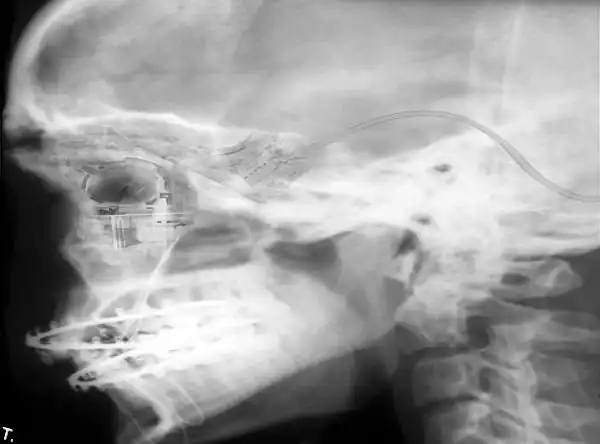 Рентген лица со встроенным чипом от компьютерной мышки.