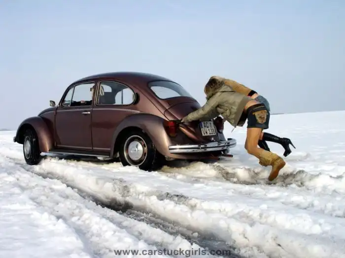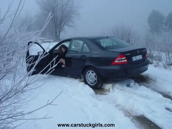 Нелегко приходится девушкам на зимнем бездорожье,Особенно, если нет рядом мужчин)---