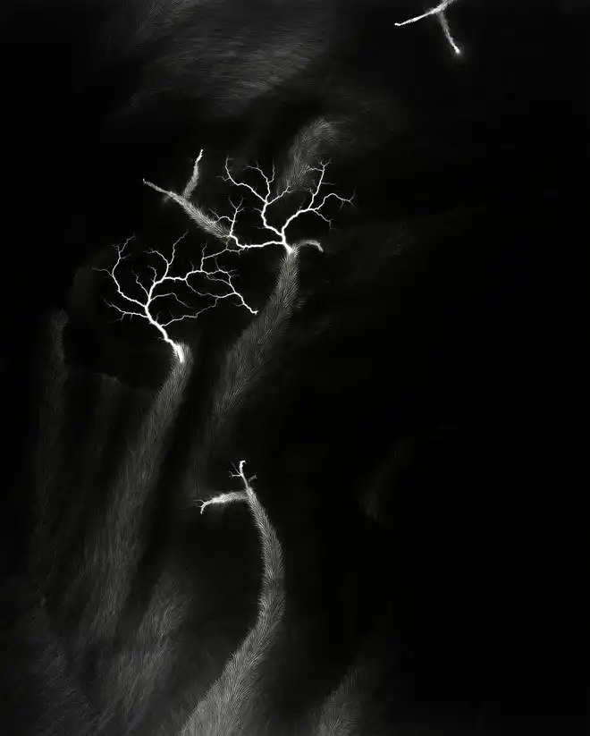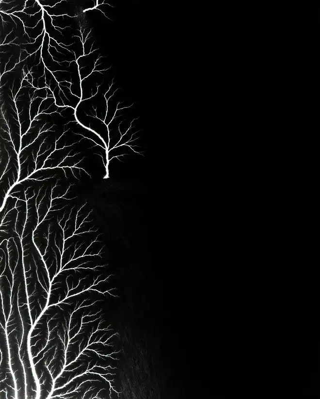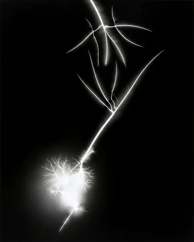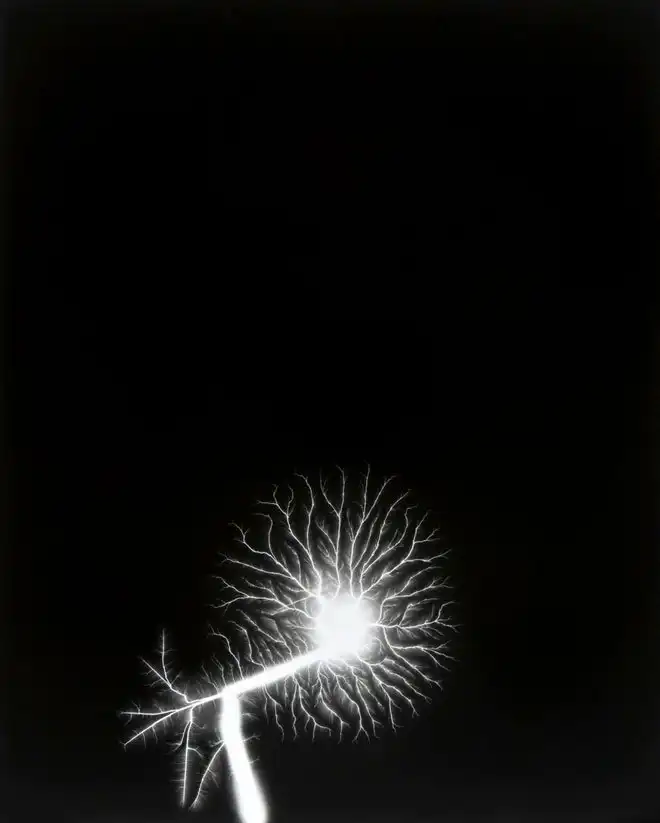 Необычные фотографии электричества. Японский фотограф пропускал ток по металлическому столу и делал снимки специальным способом.