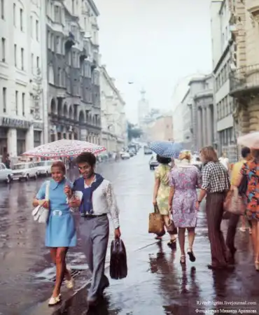 Вид на Москву со здания Министрества иностранных дел на Смоленской площади. Слева и справа - гостиницы "Белград-1" и "Белград-2", в центре Бородинский мост ведущий к Киевскому вокзалу.