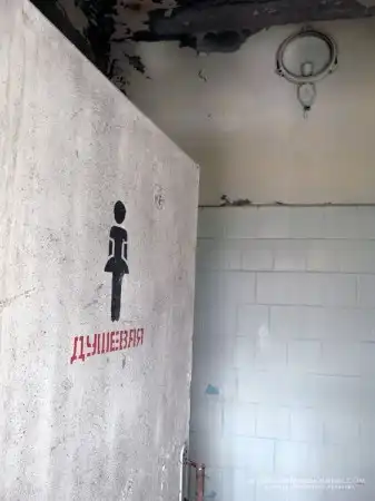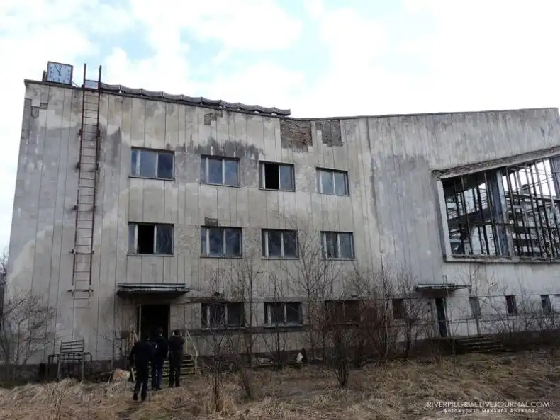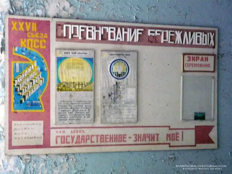 Первый, после КПП дом, украшает старая, уже почти исчезнувшая надпись про Ленина, КПСС и т.д.