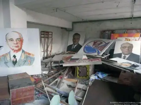 В одной из комнат в здании ДК - склад портретов советских партийных лидеров