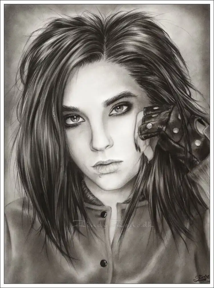 Билл Каулиц Прям сильно похож!!!!И Мерлин Монро тоже!!!!!Половина рисунков как будто фото в чёрно белом стиле!!!!!