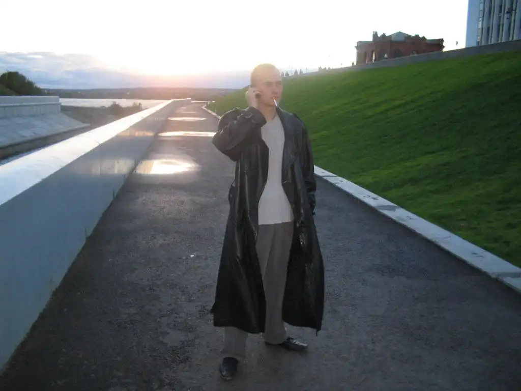 Чё там за Нео в кожанном плаще, не выпуская сигарету.
