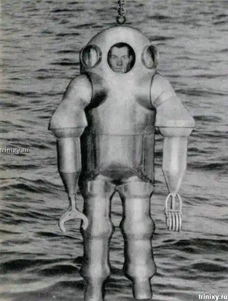 В 1938 году изобрели вот такой скафандр для подводного плавания.