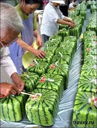 История: В Японии начали растить квадратные арбузы, чтобы они занимали меньше места в холодильниках.