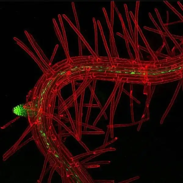 17) Корень арабидопсиса талиана. Фотограф Моника Понс, биологический институт в Барселоне, Испания. (Monica Pons)