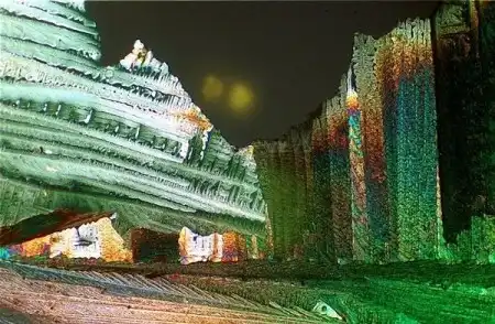 8) Кристаллическая смесь резорцина, метиленового синего красителя и серы. Фотограф Джон Харт из отделения атмосферных и океанических исследований университета Колорадо. (John Hart)