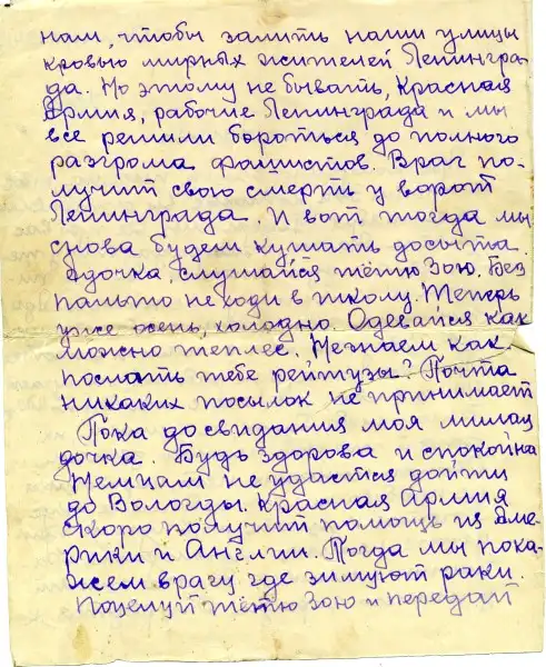 Это предпоследнее письмо из блокадного города прадеда известного блоггера upsya Белоликова А.В. - своей дочке, находяйщейся в эвакуации в Вологде. (Последнее письмо 1 ноября 1941 года).