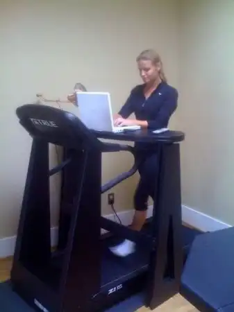 А мне нравится , надо будет тоже около беговой дорожки какой-нибудь стол организовать) Зато научишься делать несколько дел сразу.