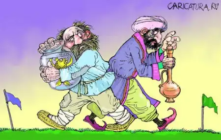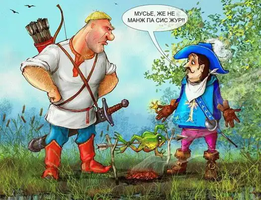 Ездит на печи. Разговаривает с рыбами. Спит с лягушками.