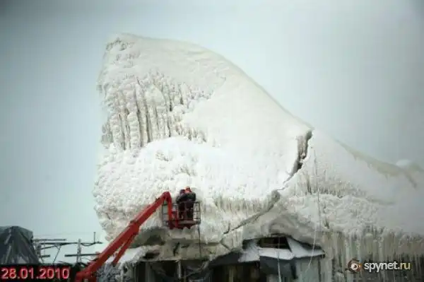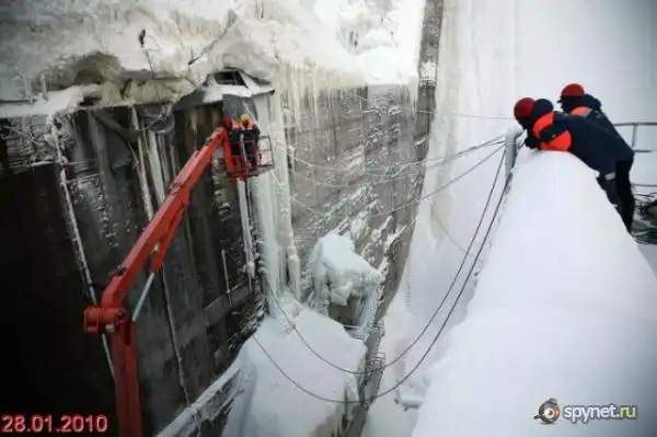 За первые две недели 2010 года резко обострилась проблема обледенения Саяно-Шушенской ГЭС. Водосброс оказался закрыт почти сплошным ледовым панцирем и его пазы оказались перекрытыми льдом. На мосту для крана выросла огромная глыба льда, имеющая в высоту примерно 30 метров, и выросшая выше стен, ограждающих водосброс. В огромном айсберге скопилось порядка 40 тысяч тонн льда, и еще порядка 60 тысяч тонн наросло на самом водосбросе.