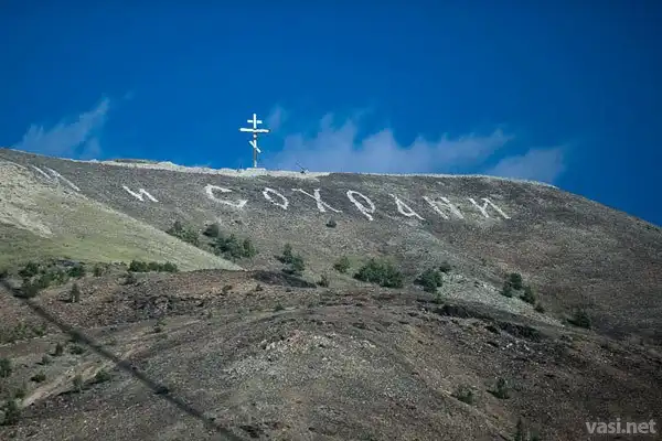 Гора, находящаяся на границе города, полностью потеряла лесной покров. На Лысой горе в Карабаше из камней была выложена надпись «Спаси и сохрани». Над надписью стоит железный крест метров 25 высотой из кусков швеллера. Вместо облицовки крест оформлен зеркалами таким образом, что при восходящем и заходящем солнце он светится.