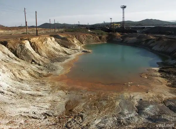 Пара слов о добычи меди. Содержание меди в руде меньше 1%. Чтобы добыть 1 тонну меди нужно переработать 100 тонн породы. После извлечения меди остаются тысячи тонн шлама. Его сваливают недалеко от завода. Образуются так называемые терриконы (отвалы, создаваемые при разработке месторождений)