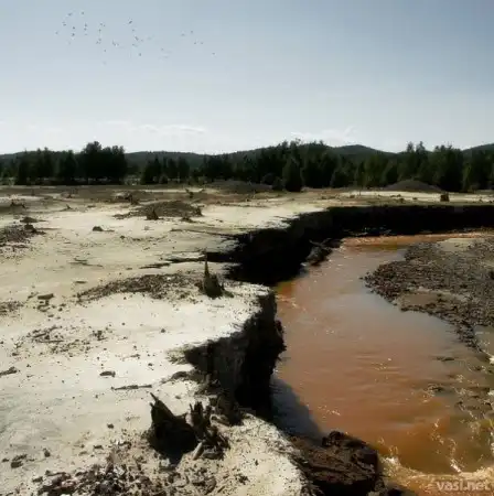 По берегам реки на расстоянии 100 метров ничего не растет.