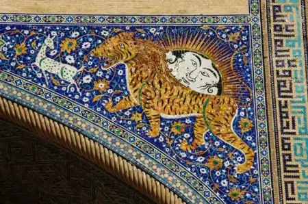 Не надо забывать что иранцы тоже в какой то степени арийцы, потомки персов, хотя и перемешались с арабами. Кстати ислам запрещает изображать людей и животных, тут проглядываються и языческие мотивы, ведь до принятия ислама они были зороастрийцами