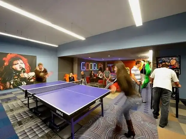 Да это психологический ход такой. Ведь в такую обстановку офиса всегда придти хочется, и хочется творить, и хочется работать... Так что это наоборот стимул... У нас бы так сделали, думаю никто бы не опаздывал и не прогуливал работу по липовым болезням