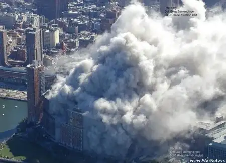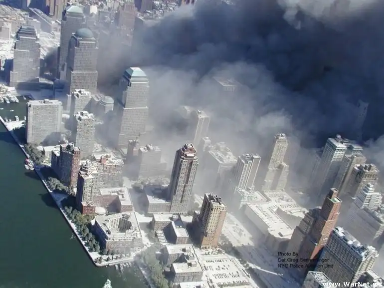 Департамент Полиции Нью-Йорка опубликовал кадры обрушения башен Всемирного торгового центра.Фотографии сделаны сотрудниками департамента с вертолета 11 сентября 2001 года.