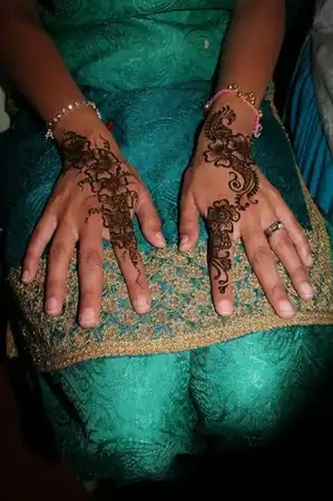 Этот вид искусства очень популярен в Южной Азии и называется татуировки хной.В отличие от настоящих тату, эти рисунки можно смыть.Получается довольно необычное и красивое украшение.