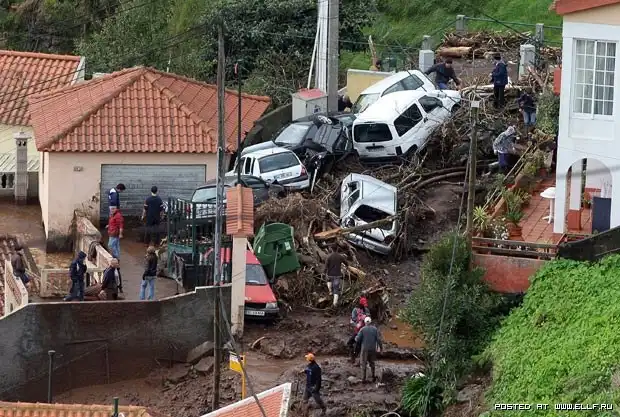 В субботу, 20 февраля, на португальском острове Мадейра начались проливные дожди, которые стали причиной сильных наводнений и оползней. По предварительным данным, жертвами стихии стали более 40 человек, однако власти не исключают роста числа погибших. Осадки сопровождались ураганным ветром, скорость которого достигала 100 километров в час. На острове повреждены дороги, нарушена телефонная связь, не работает аэропорт. Остров Мадейра расположен в Атлантическом океане в 1000 километрах к югу от континентальной части Португалии.