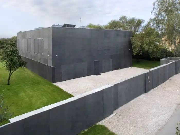 Как вы уже поняли, этот дом стоит в Варшаве, с виду напоминает крепость, но это в том случае,