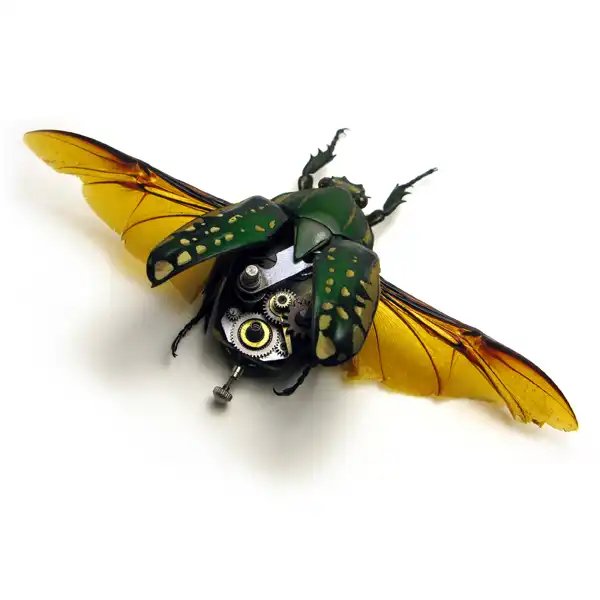 Американец Mike Libby создает своих необычных насекомых на протяжении последних восьми лет. Основным материалом при их создании являются антикварные карманные и наручные часы. Каждое такое насекомое сделано в единственном экземпляре и стоит немалых денег - от 600$ до 2500$.