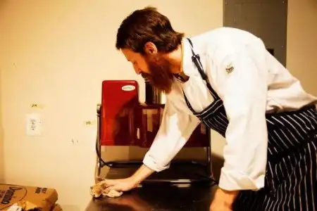 дядька с бородой прыгает над пищей, прыгал бы без одежды вообще, сукин кот, бля..