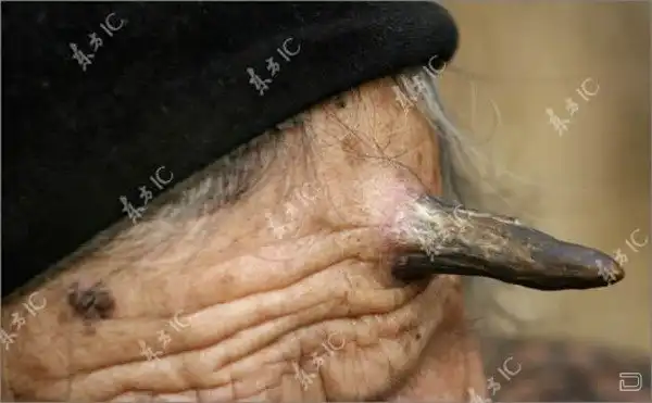 У бабушки Zhang Ruifang из Японии в прошлом году начал расти рог. Сейчас он длинной 6 сантиметров и ей уже 100 лет.