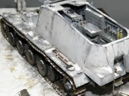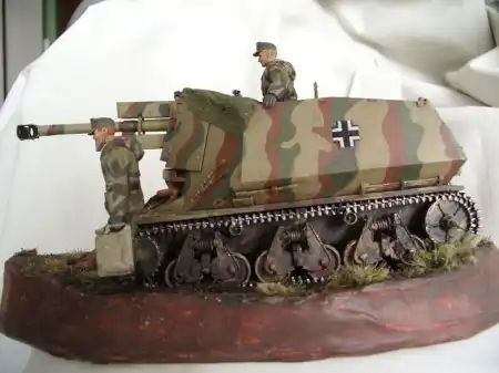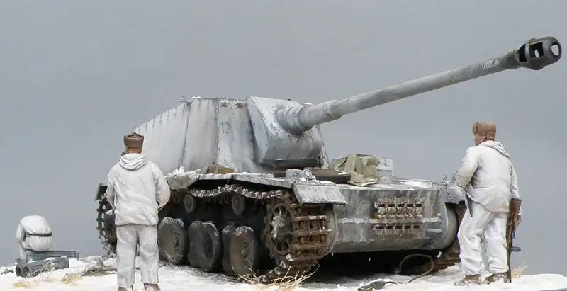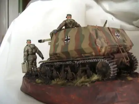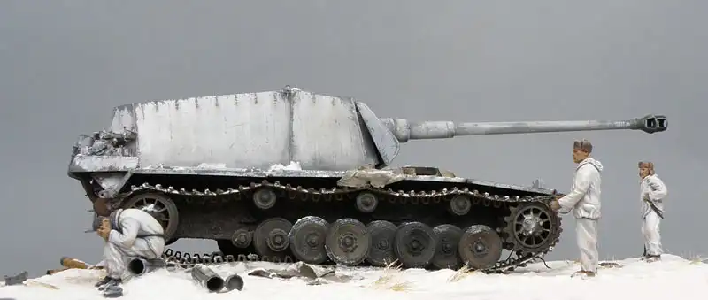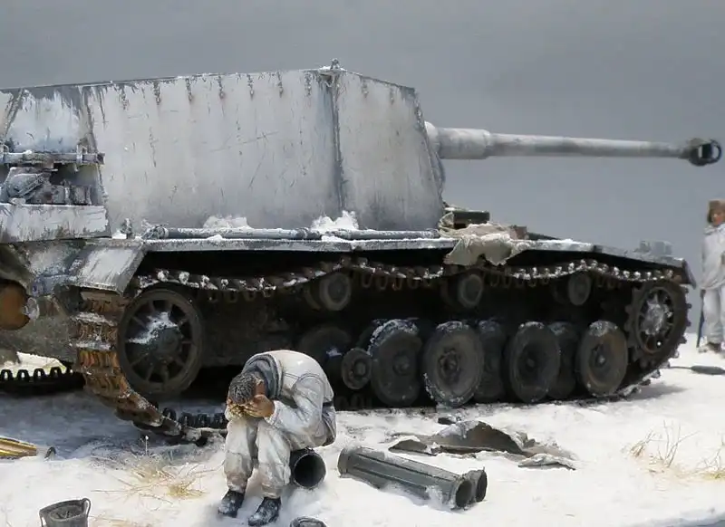 Комментарий автора: "Выставляю на ваш суд эту небольшую диорамку, воспроизводящую захват советскими войсками 128-мм САУ "Sturer Emil" (Упрямый Эмиль) в январе 1943 г. (район Новоалексеевки, под Сталинградом). Позволил некотурую вольность в сюжете, в частности, немца, который не захотел отступать, так и остался сидеть раздавленный и не понимающий, как его армия могла потерпеть поражение под Сталинградом. Там и застали его наши солдаты."