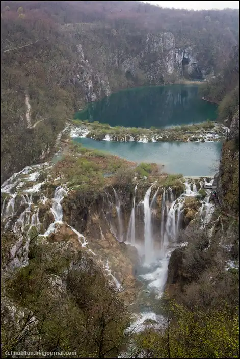 Плитвицкие озера в Хорватии. Национальный парк в Хорватии. Воды реки Корана, текущие сквозь известняк, за тысячи лет нанесли барьеры травертина, образовав естественные плотины, которые в свою очередь создали ряд живописных озер, водопадов и пещер.