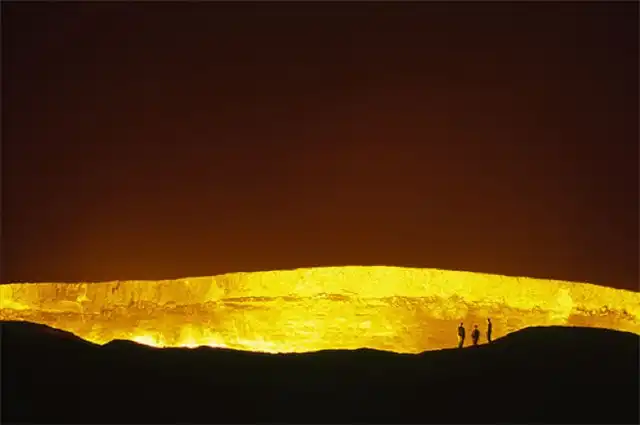 В пустыне Каракум рядом с населенным пунктом Дарваза есть огромная огненная яма. Место не совсем природного происхождения, так как в создании дверей в ад принимали участие геологи СССР.