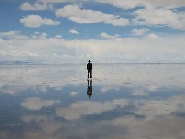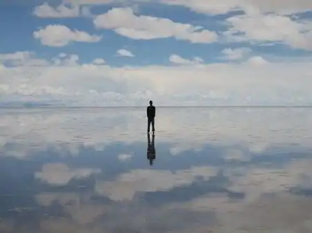В Боливии есть необычная равнина Salar de Uyuni, покрытая толстым слоем соли. Ее площадь более 12000 квадратных километров, и в определенные моменты времени она покрывается тонким слоем влаги, превращаясь в огромное зеркало (см. фото). Это ее свойство используют для настройки оптического оборудования на спутниках Земли. Еще эта равнина является богатым источником лития (более половины мирового запаса).