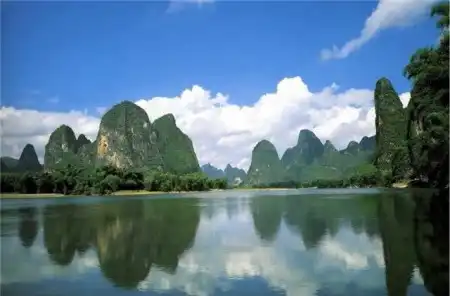 Горы Гуйлинь - карстовые образования вдоль реки Ли, рядом с городом Гуйлинь провинции Гуанси в Южном Китае. По-китайски Гуйлинь означает «лес деревьев кассии». Толстые слои известняка, из которого состоят утесы, откладывались когда-то на дне древнего моря. Несколько миллионов лет спустя этот участок земной коры поднялся и дожди постепенно начали размывать породу, уже ослабленную трещинами и разломами.